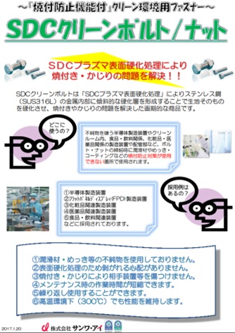 プラズマ表面硬化処理により、金属内部に硬化層を形成し、焼き付きを防止!潤滑剤不使用で、クリーンルーム等に最適!プラズマ表面硬化処理だから剥離しない!繰り返し使用可能!プラズマ表面硬化処理のみの対応も可能! ・カタログへはこちらから ・お問い合わせフォームへはこちらから